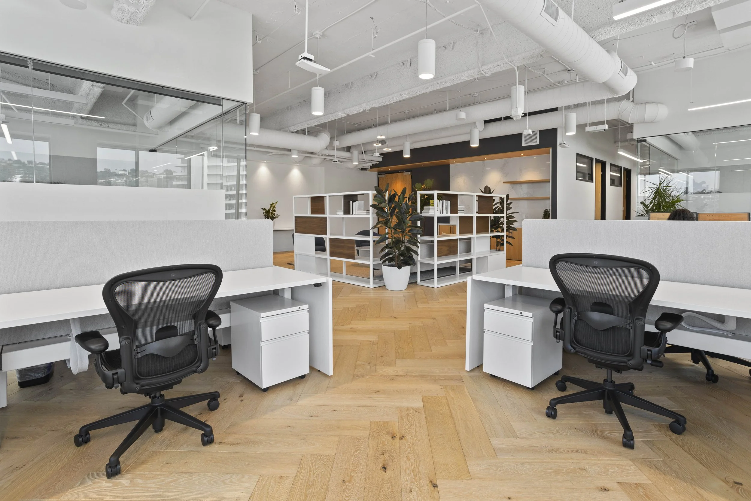 Japanese and Scandinavian design influenced the creation of this investment firm. A light neutral palette of natural materials formalized by rigid geometries gallow for colorful, organic furniture interventions.